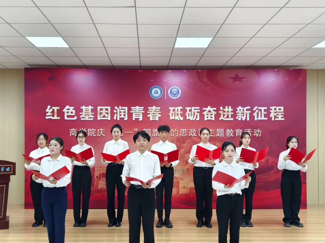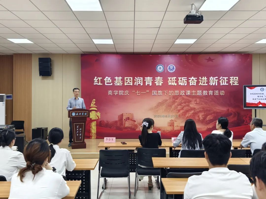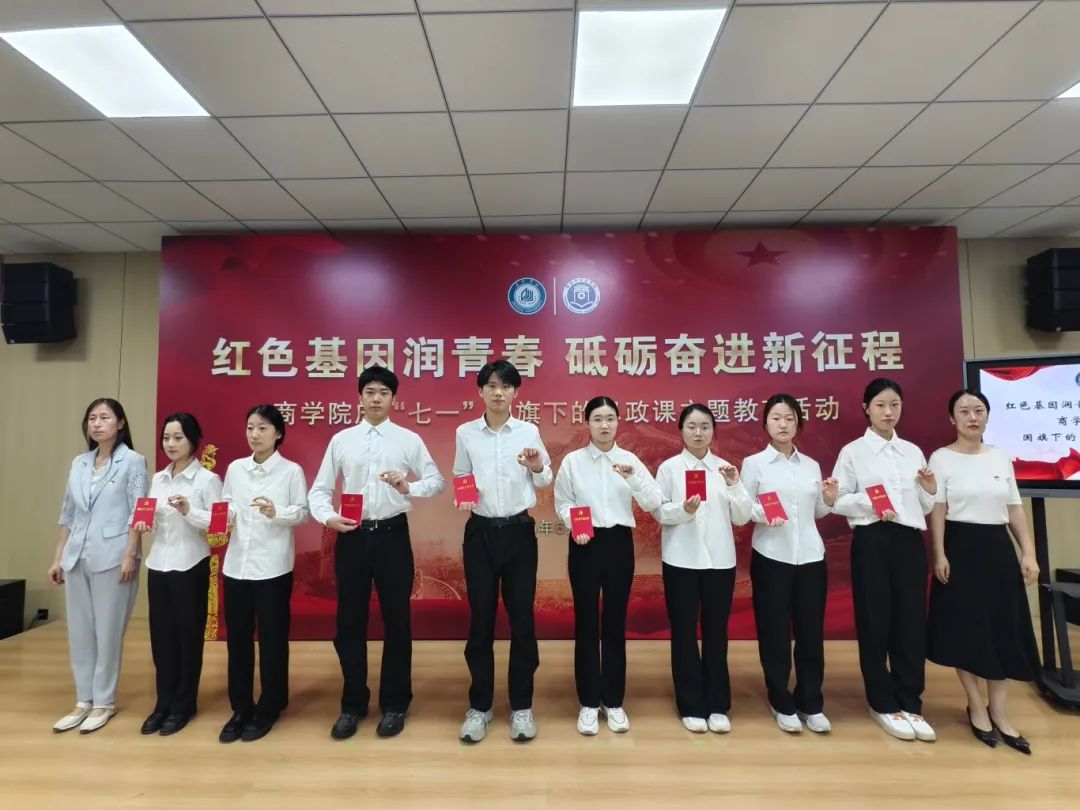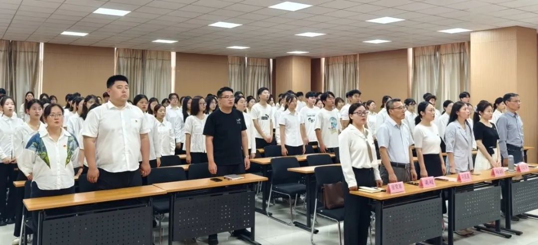 为庆祝中国共产党成立104周年,传承红色基因,凝聚奋进力量,6月27日,太阳成集团tyc234cc在明理楼0157举办“红色基因润青春 砥砺奋进新征程”庆“七一”国旗下的思政课主题教育活动。公司领导班子成员、各党支部书记、党员教师代表、全体辅导员、班主任及员工党员、入党积极分子参加活动,以庄重仪式向党的生日献礼。
