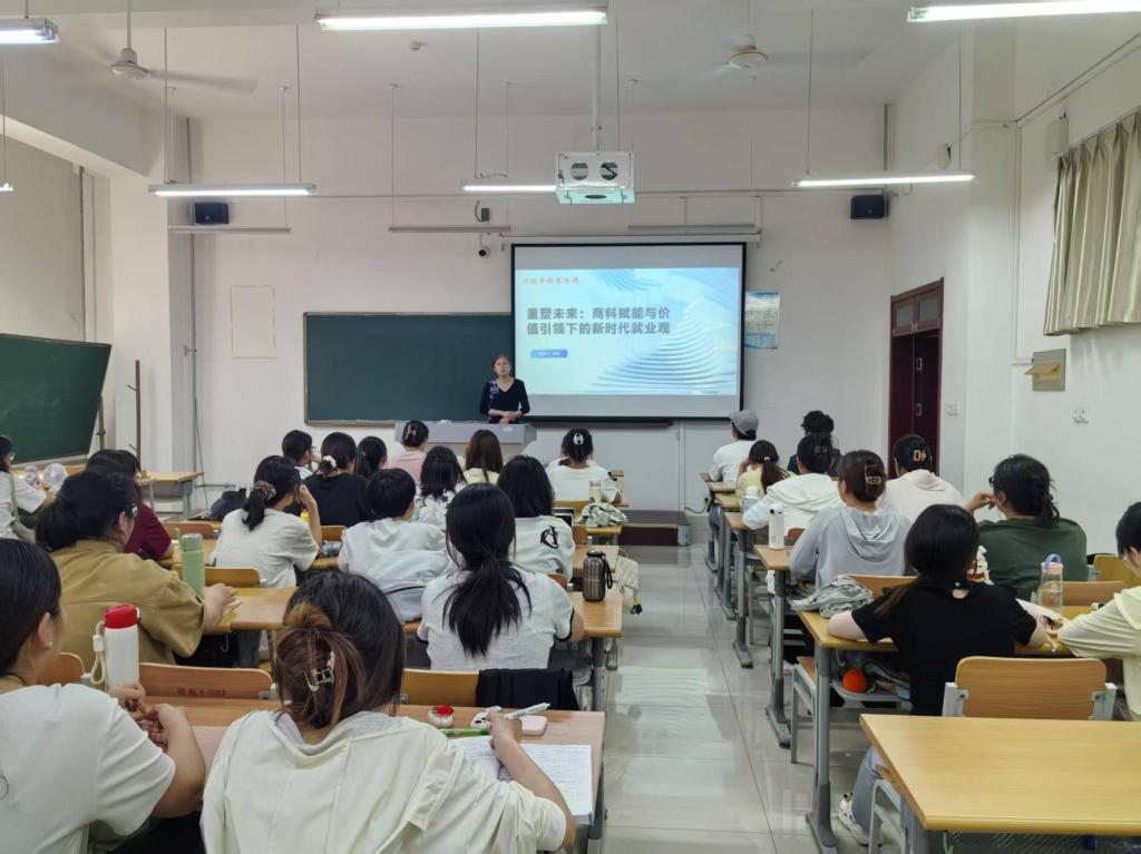 6月6日,太阳成集团tyc234cc经理杨颖以“重塑未来:商科赋能与价值引领下的新时代就业观”为主题,为24级会计专升本员工讲授思政课,课程围绕四大核心模块对就业挑战及其应对路径展开解析。