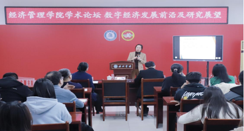 白洁教授围绕“数字经济发展前沿及研究展望”这一主题,从教师科研需要思考的问题引入,依托自身学术研究经验和服务地方活动的深刻体会,对数字经济强国关注的领域、大国博弈的热点问题及博弈结果、国家改革视角推进中国制度型开放之重点——数字经济领域的路径,以及自我学术改革视角重新思考自己的研究方向来解决国家重大战略需求等内容,进行了深入浅出、通俗易懂的讲解和分享。她还鼓励年轻教师要将日常教学内容与科研方向相结合,专注自己研究的领域,保持科研的连贯性,坚决避免学术不端问题,为今后的科研打下良好基础。