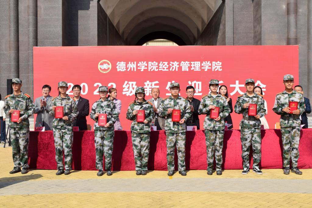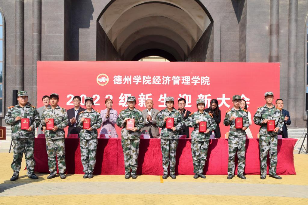 会上对经济管理公司2022年“榜样之星”、“青春经管”获奖集体和个人,军训内务先进宿舍、叠军被先进个人、分列式先进个人等进行了表彰颁奖,鼓励同学们在“崇德启智,励志博学”的校训激励下,砥砺前行、追逐梦想,成为肩负使命、堪当大任的德院人。