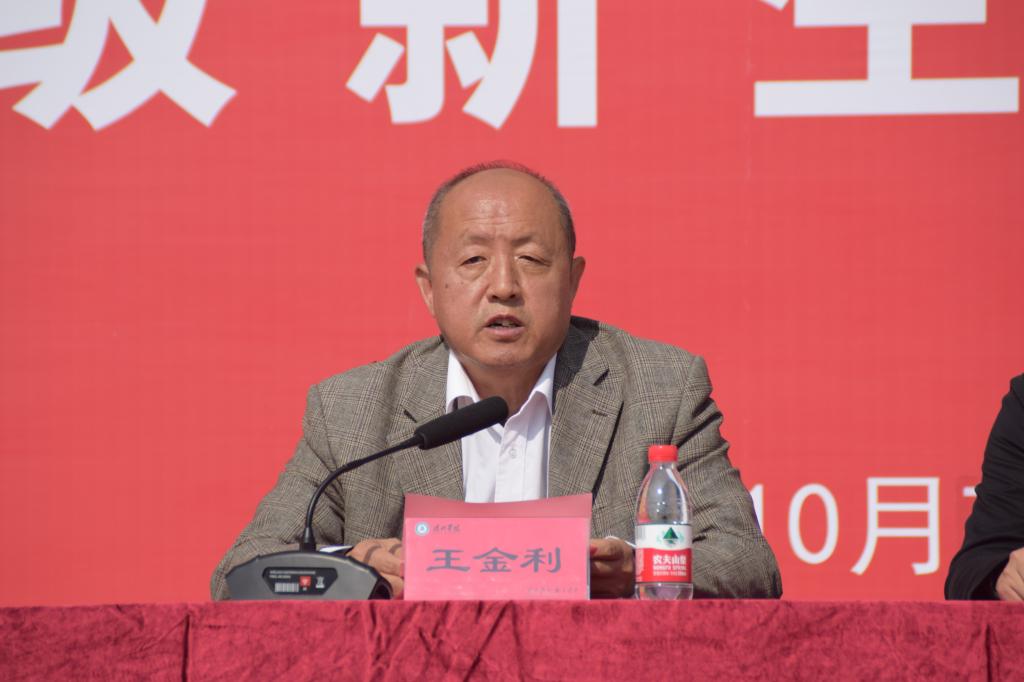 党委副书记王金利在迎新大会上致辞。王金利代表全校师生向经济管理公司2022级新生表示热烈欢迎,他提出,进入新的起点,同学们要勤学习修品德,赓续革命精神和红色血脉,做新时代“接班人”;要拼实干长真才,锤炼务实品质和过硬本领,做新时代“实干人”;要勇担当敢奋斗,强化责任意识和创新能力,做新时代“担当人”。他希望同学们系好人生第一粒扣子,走好人生道路,在学习中强化责任意识和创新能力,在社会实践中展现蓬勃坚强的新时代青年力量。