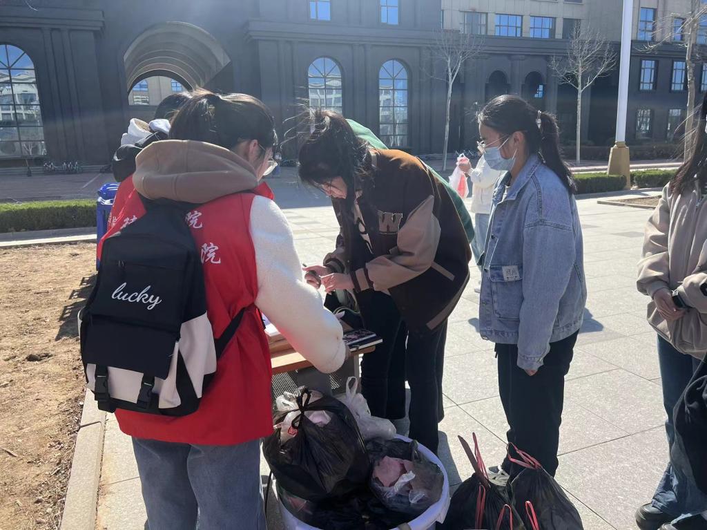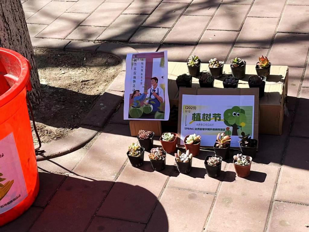 3月12日,正值第四十五个植树节之际,经济管理公司员工会举办“手持一抹绿 心栽一片林”植树节环保换物活动。活动中同学们按照划分的区域在校园内捡拾垃圾,通过定量垃圾换回一盆小小绿植,为校园生活增添一抹生机和绿色。现场志愿者有序组织并耐心讲解垃圾回收的方式及分类回收垃圾的益处。