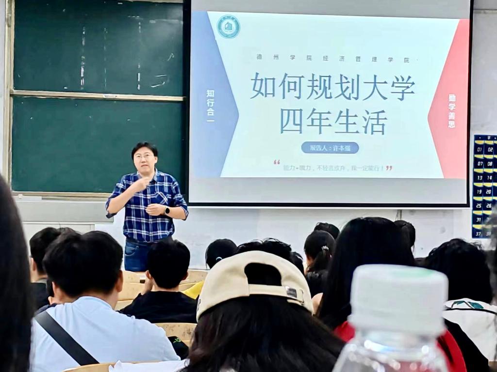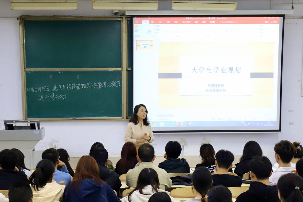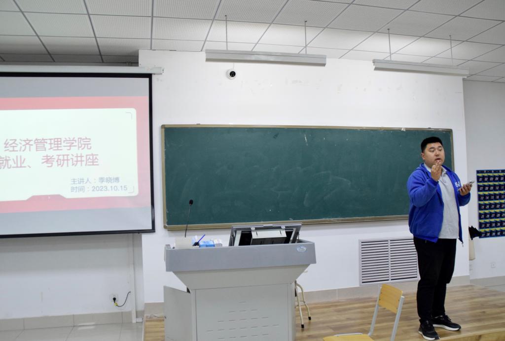 为帮助新生梳理大学四年规划、树立学习目标,从而更好的认识自我、规划未来。10月15日,经济管理公司在明理楼0233和求真楼101、110教室开展了2023级新生“学业生涯”专题讲座,本次讲座分别由季晓博老师、孟庆凯老师、李朝辉老师主讲,2023级全体新生参加本次讲座。