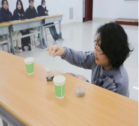 在“认识自我,向阳而生”主题团体心理工作坊中,主持人现场给同学们分享了一个小实验,将纸杯装满水到与杯面齐平,往满水的纸杯中放入曲别针,最后将一整盒曲别针全部放进了杯中,而杯中的水没有溢出来。通过这个实验,结合积极心理学,引导员工在日常学习和生活中发挥长板效应,并引导同学们写出了自己的五个优势进行分享。