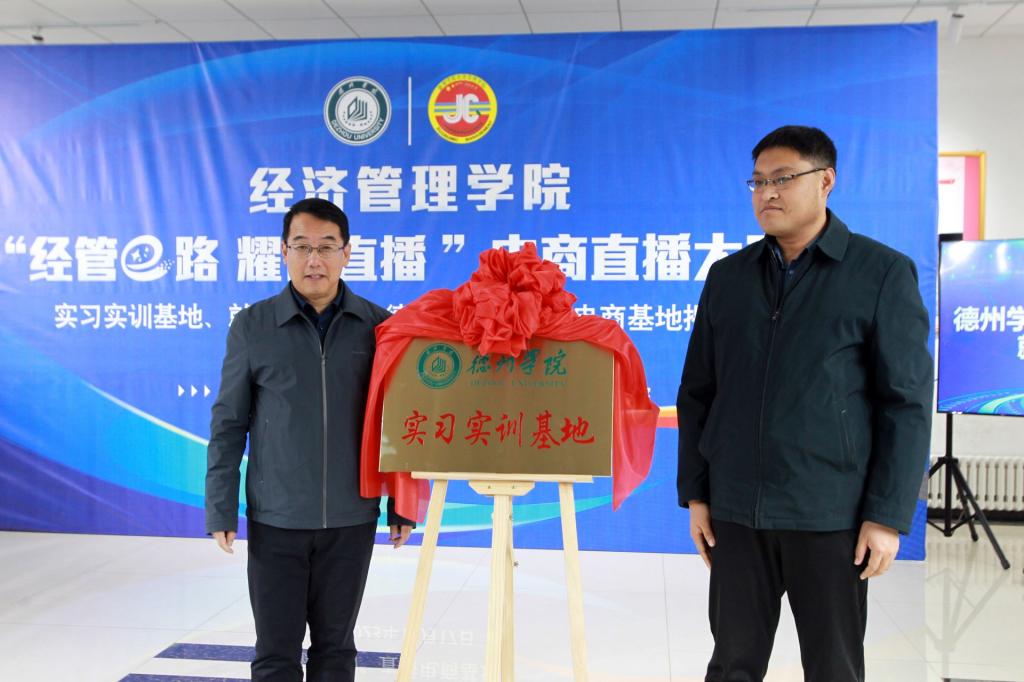 随后举办了实习实训基地、就业基地、“德云购”老员工电商基地揭牌仪式。经济管理公司相关负责人与“德云购”负责人分别签约实习实训协议和就业协议。举办了“山东电商直播基地‘德云购’老员工直播电商实训基地”揭牌仪式。经济管理公司负责人为‘德云购’金牌主播鲁小坤颁发了经济管理公司“应用型校外电商导师”证书。