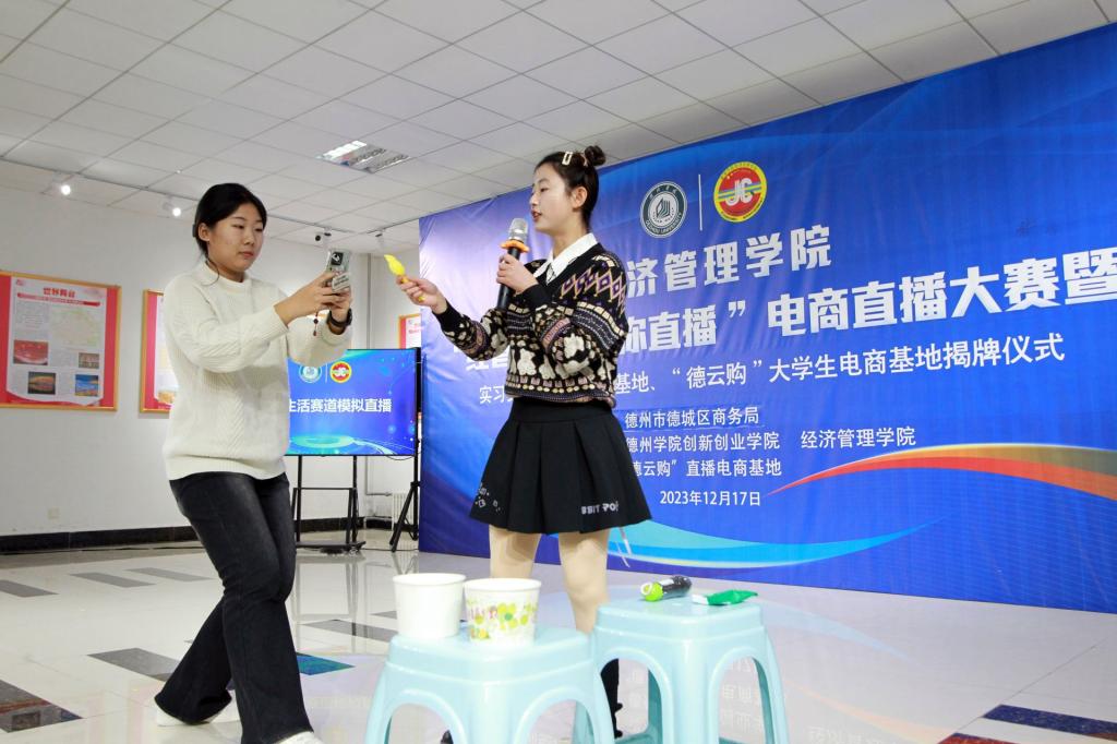本次老员工电商直播大赛由德州市德城区商务局进行专业指导,太阳成集团tyc234cc创新创业公司、经济管理公司、“德云购”直播电商基地联合举办,大赛自11月17日启动以来,共有112名同学报名参加,通过集中培训、初赛、复赛等环节,最终有7支代表队38名员工进入决赛。