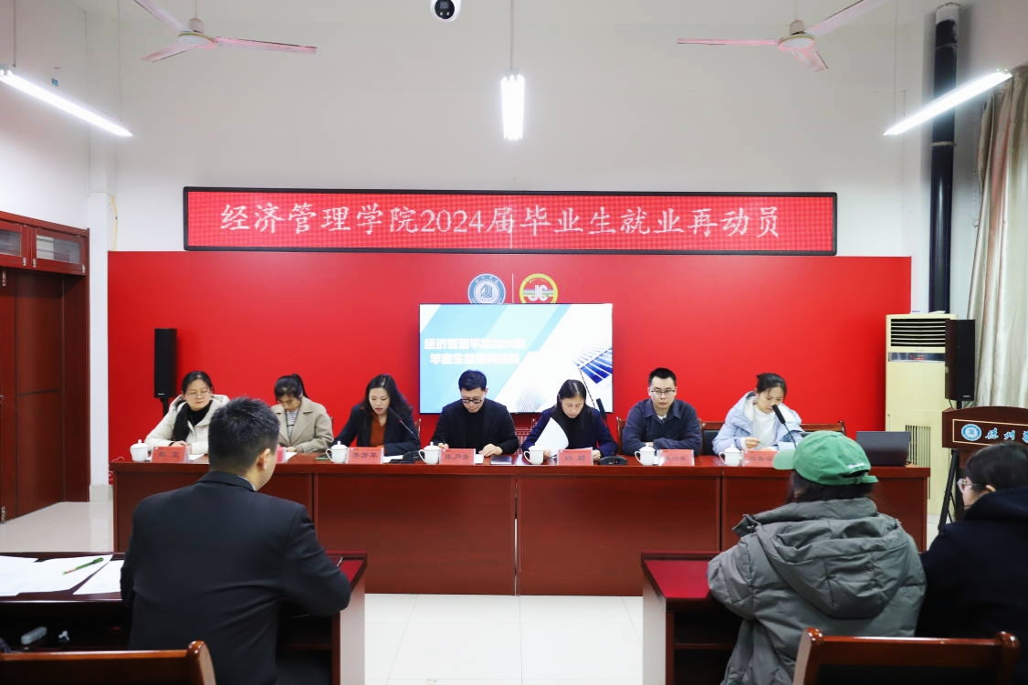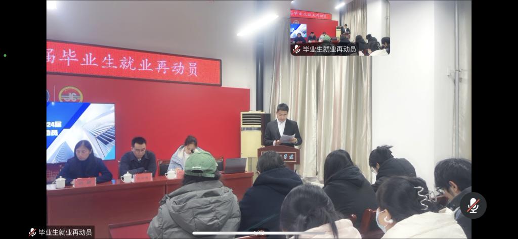 为扎实推进2024届毕业生就业工作,帮助毕业生利用寒假进一步了解就业形势、熟悉就业政策、转变就业观念、找准就业目标,实现更加充分、更高质量的就业。近日,经济管理公司在明理楼0364开展2024届毕业生就业再动员。公司领导班子成员、2024届毕业生辅导员、班主任,2024届全体毕业生及家长参加了会议。会议采取线上线下相结合的方式进行。