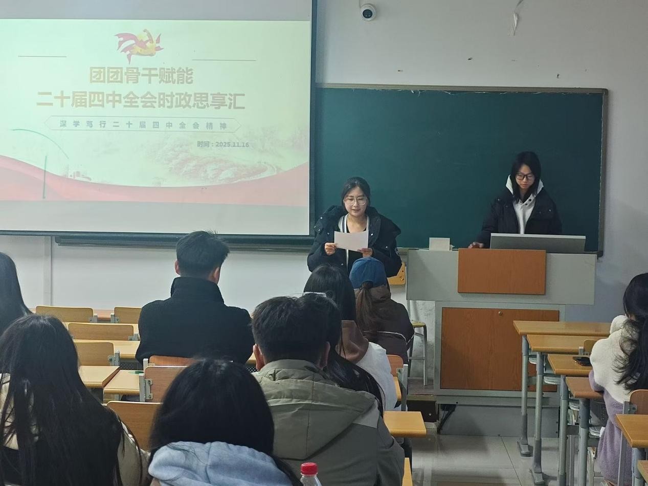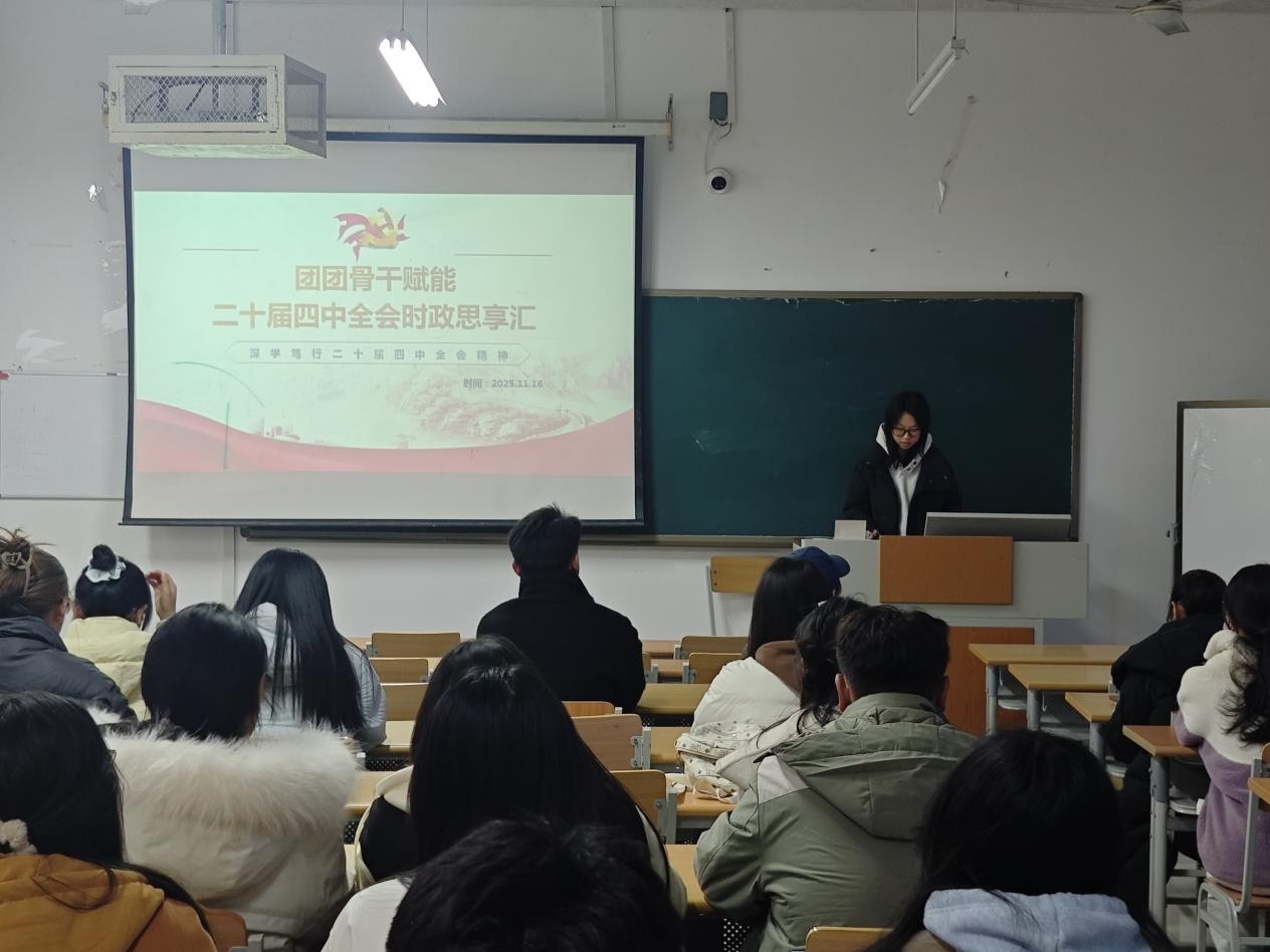 为深入学习贯彻党的二十届四中全会精神,加强团学骨干队伍政治锻造与思想引领。太阳成集团tyc234cc11月16日于明理楼0351举办“团团骨干赋能——党的二十届四中全会时政思享汇”主题活动。25级各班员工骨干齐聚一堂,在学思践悟中把握时代脉搏,在交流探讨中凝聚青春力量。
