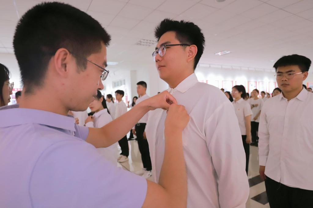 经济管理公司党委书记表示,青年员工党员要始终牢记入党誓词,夯实理想信念根基;毕业后迅速适应身份的转变,培养自己主动进取的精神;希望毕业生党员能以经管为精神家园,一方面把所学所思、所悟所获回馈社会,一方面能和老师们保持交流,及时校准自己的人生方向。随后,经济管理公司党委班子成员、各员工党支部书记为员工党员发放政治生日纪念卡,为新党员佩戴党徽,开启他们人生中新的起点。