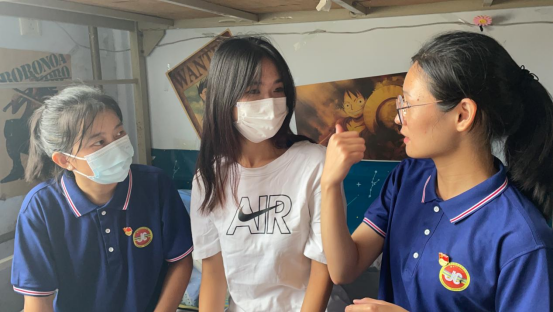 党员志愿者深入宿舍与22级新生亲切交流入校后衣食住行的相关信息(左1孙雅丽,左3邹田雨)