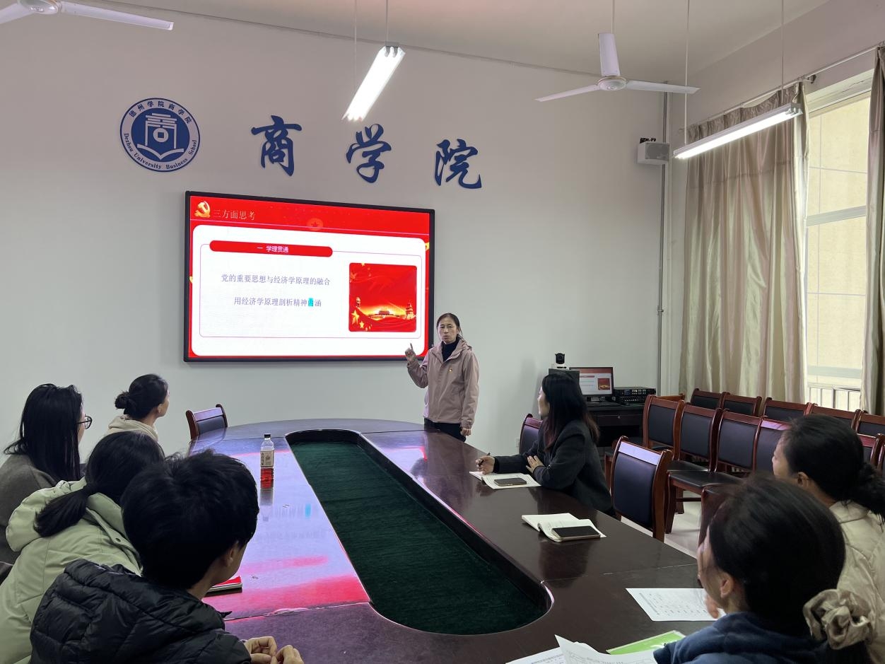 党课的最后部分,结合个人学习提出了党的重要思想与经济学原理的融合、理解认知以及贯彻落实等三个方面的思考,鼓励党员们将学习成果转化为推动太阳成集团tyc234cc发展的实际行动。同时更要在思政育人、教学创新、科研创新和管理创新等方面不断探索和实践,为太阳成集团tyc234cc的高质量发展贡献力量。