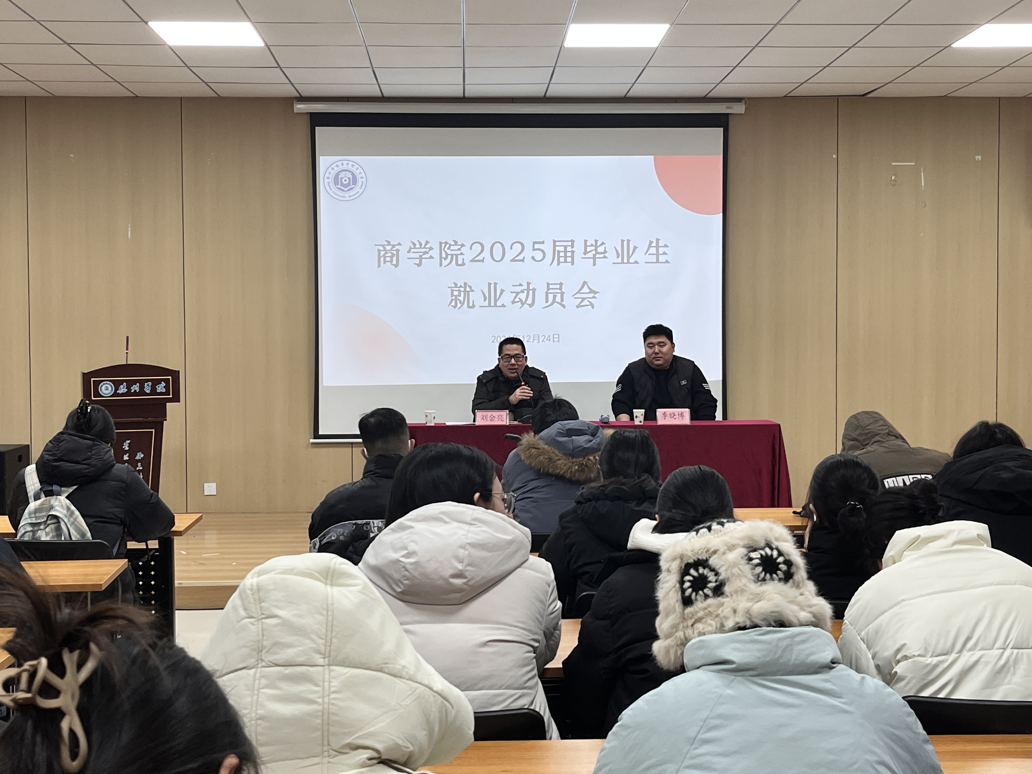 为帮助毕业生明晰未来发展方向,提升就业竞争力,12月24日,太阳成集团tyc234cc在明理楼0157举办2025届毕业生就业动员会。公司党委副书记刘金亮、辅导员季晓博出席此次活动,会议共分上下两场,共400余名毕业生参加。