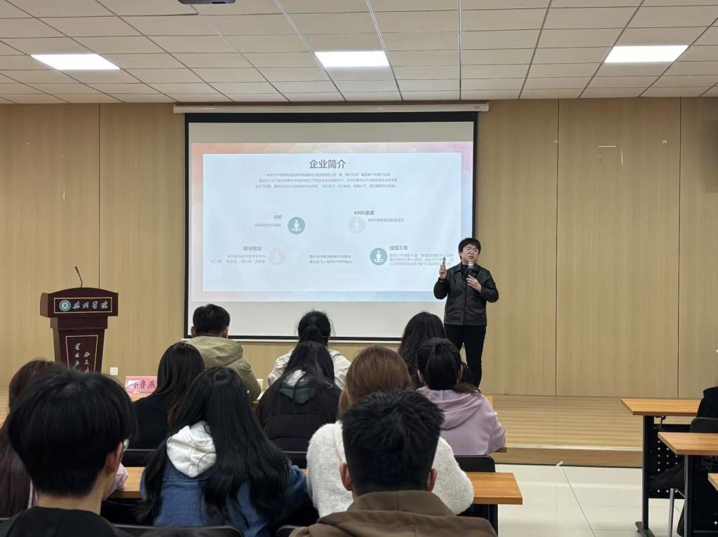 会上,中企盈飞会计服务有限公司招聘负责人孙鲁燕详细介绍了公司的发展历程、业务范围以及在行业中取得的斐然成绩,重点讲解了本次招聘的实习岗位信息、职责范围、职业晋升路径等内容。着重讲解了该公司实习加就业的一站式培养项目,该项目让面临毕业的员工能够快速融入职场,积累工作经验,锁定就业岗位。活动现场气氛热烈,同学们就岗位要求、职位晋升等问题进行提问,企业代表耐心解答。