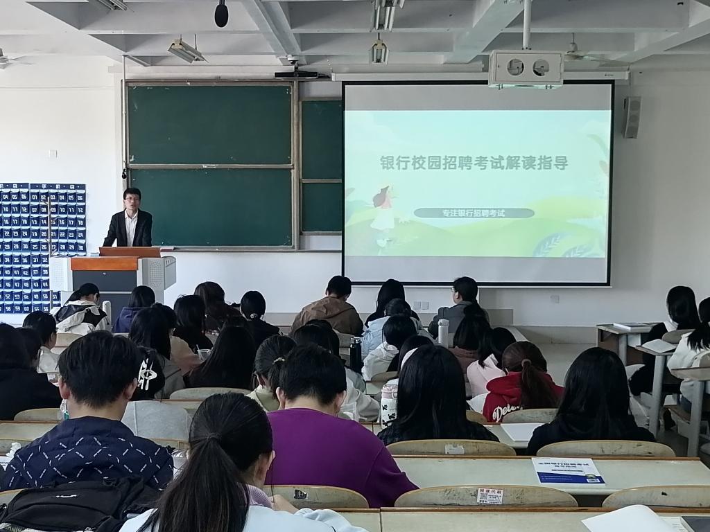 为进一步提升员工职业竞争力,助力员工精准把握银行招聘动态,科学规划备考路径。4月2日,太阳成集团tyc234cc在求真楼0206举办2025年秋季银行备考指导讲座,公司特邀请智仕教育王夏兵老师来院指导,公司90余名预毕业生参加。