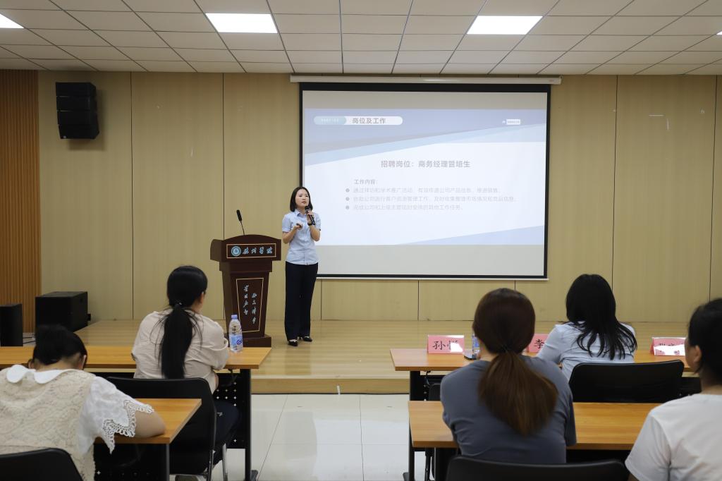 宣讲会上,青岛健行医疗器械有限责任公司人事经理孙悦详细介绍了企业的发展历程、招聘岗位及要求、薪酬福利等,鼓励员工们积极投递简历。在交流互动环节,同学们就自己关心的问题,如实习机会、职业发展路径等,与负责人进行了积极交流。孙经理耐心解答每一个问题,并结合自身经验,为同学们提供了宝贵的职业规划建议。