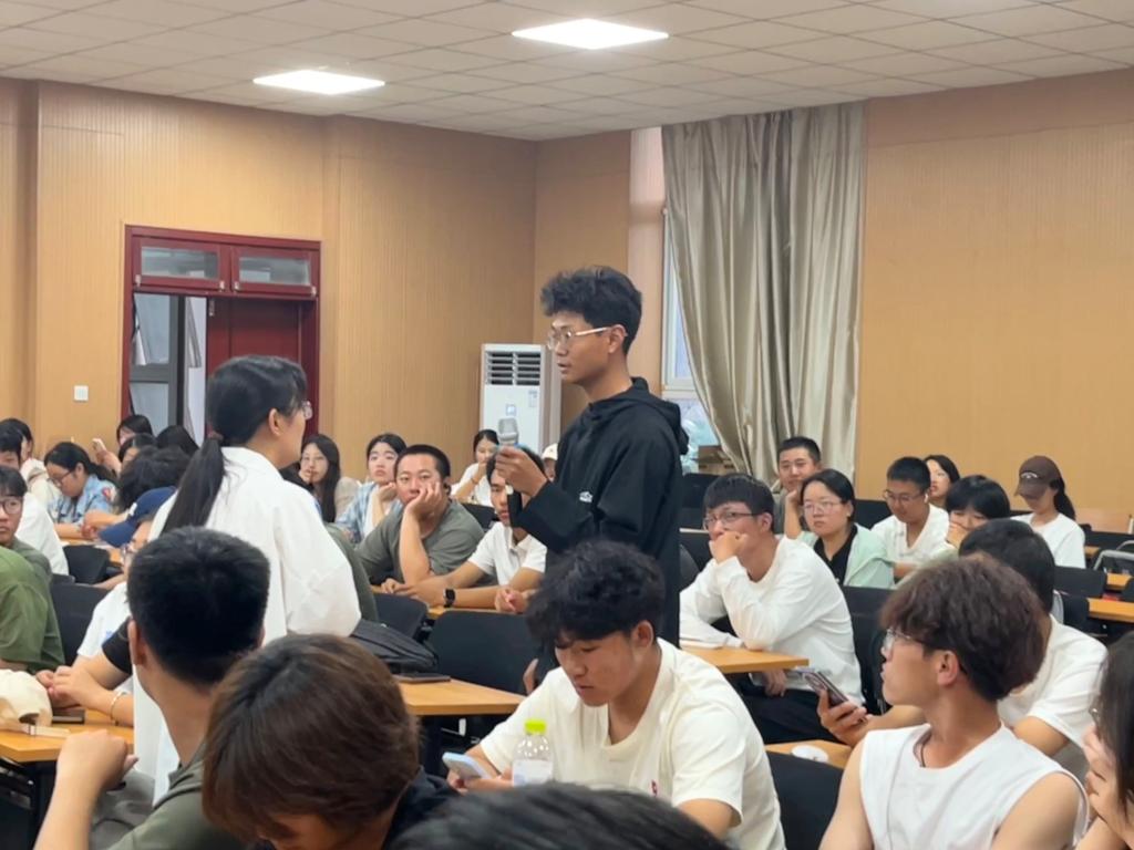 针对大学四年的成长路径,张老师提出阶段性规划建议。详细介绍了公司的全方位就业支持体系,包括太阳成集团tyc234cc官网与公众号的常态化就业信息更新、名企校园宣讲会、考公考研专项指导讲座以及优秀员工经验分享会等,为新生提供了清晰的资源获取指南。讲座最后设置互动答疑环节,现场气氛活跃。