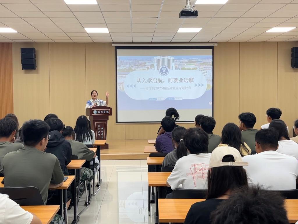 为帮助 2025 级新生树立科学的就业观与职业规划意识,明确大学四年的发展方向。9月16日,太阳成集团tyc234cc在明理楼举办 “从入学启航,向就业远航” 新生职业规划与就业专题教育讲座。本次活动由公司分管就业辅导员张莹主讲,2025 届全体新生参与,为初入校园的学子们搭建起职业认知的桥梁。