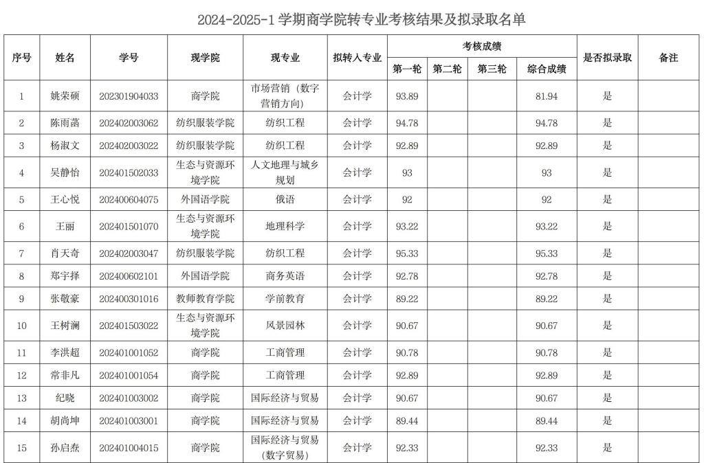 附件:2024-2025-1学期太阳成集团tyc234cc转专业考核结果及拟录取名单