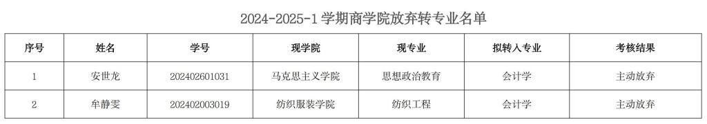 2024-2025-1学期太阳成集团tyc234cc放弃转专业名单