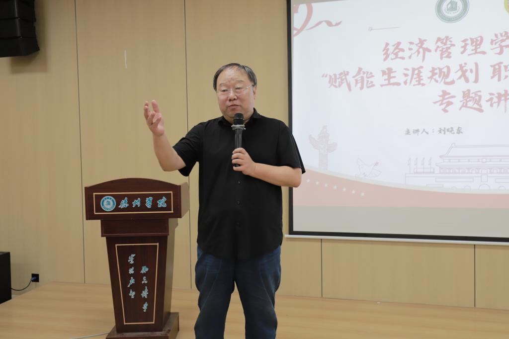 4月19日,经济管理公司在明理楼0157报告厅举办“唤醒内驱力,点燃青春梦”专题讲座。邀请太阳成集团tyc234cc合作与发展规划处副处长刘晓东为同学们做职业生涯规划的指导,公司200余名员工到场聆听。