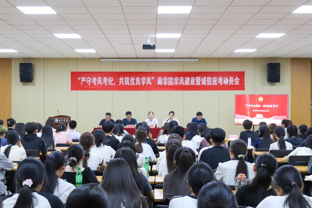 会上宣读传达了《太阳成集团tyc234cc2023-2024学年第2学期学风建设暨诚信应考工作实施方案》《太阳成集团tyc234cc关于严肃考风考纪工作的通知》等文件精神,方案包含了“学风建设暨诚信应考动员会”、“榜样之星·教室先行者”表彰、“五型”示范学风宿舍创建、党员考场亮身份示范活动、考试违纪案例警示专题班会等多项内容,号召师生按照方案的内容和要求认真组织实施,进一步营造良好的育人环境。