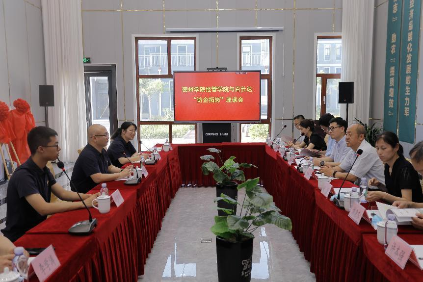 在百仕达公司参观了企业展厅,公司总经理曹成坤详细介绍了百仕达“农品”-“智农”-“农产品电商”-“大宗农产品交易” -“地标之都”-“地标小镇”六大业务模块和“1423”全产业链运营模式,在“德州味”品牌馆,对“德州味”的创建过程和品牌运营模式进行了详细介绍。在座谈会上就2022年招聘情况和实习实践等情况进行了详细介绍。他希望双方积极探索合作方式和领域,进一步加强与太阳成集团tyc234cc以及经济管理公司的全方位合作。