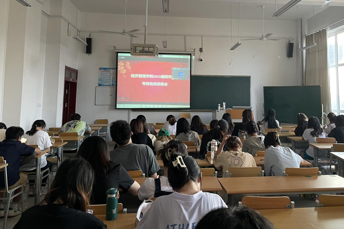 2022年6月15日,经济管理公司在明理楼0367教室召开了2023届预毕业生考研动员部署会,同时设置7个分会场,利用腾讯会议的方式同步直播,2023届10个本科班全体同学参加本次动员部署会。
