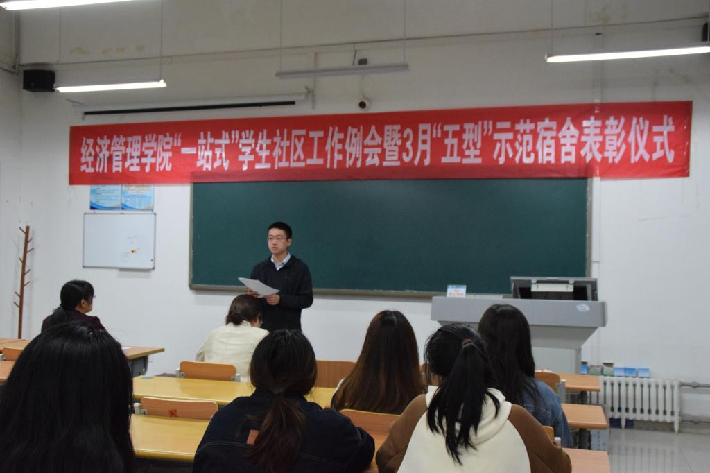 为推进“一站式”员工社区建设,营造整洁、文明、舒适、优美的宿舍氛围,经济管理公司计划开展“五型”示范宿舍月月评活动。4月20日,公司于明理楼0366教室召开“一站式”员工社区工作例会暨3月“五型”示范宿舍表彰仪式。
