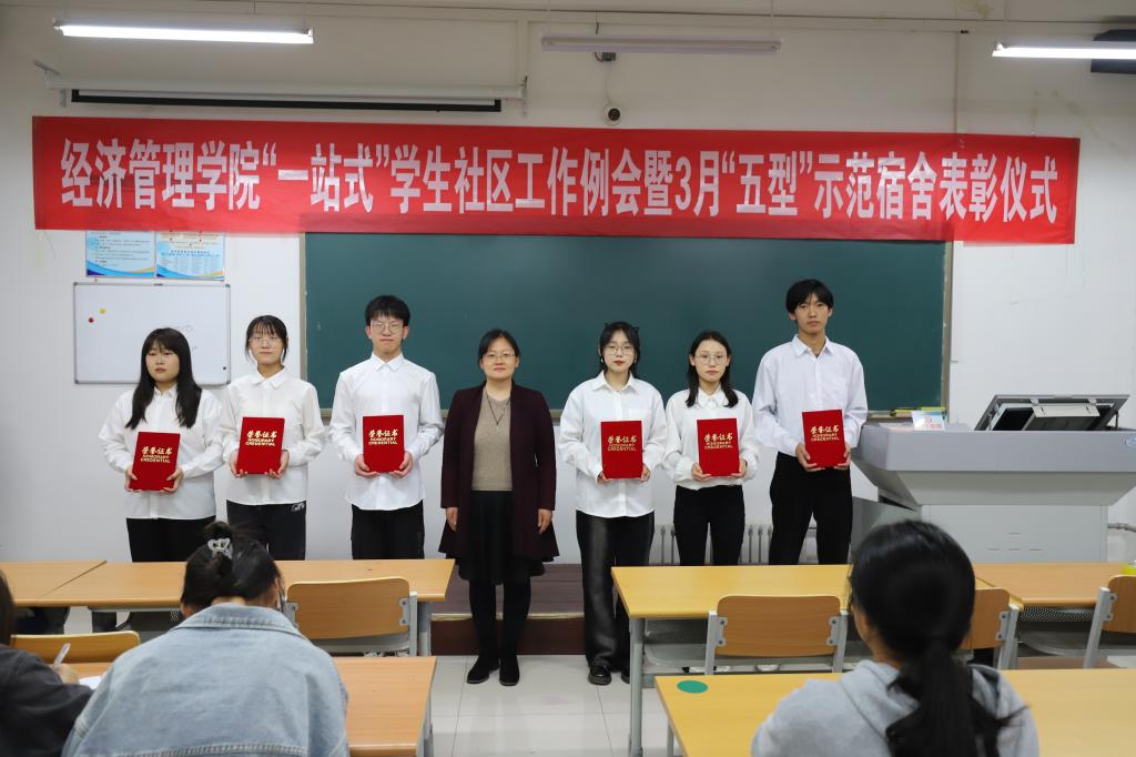 经济管理公司“五型”示范宿舍评选活动,是在德智体美劳五个方面均衡发展、全面提升的基础上,分别围绕“德”育功能创建思想引领、崇尚品德的“服务先锋宿舍”;围绕“智”育功能,创建学风良好、成绩优异的“学业示范宿舍”;围绕“体”育功能,创建热爱锻炼、崇尚健康的“文体标兵宿舍”;围绕“美”育功能,创建环境优美、布置独特的“环保创新宿舍”;围绕“劳”育功能,创建勤劳善动、争优创先的“劳动模范宿舍”等方面开展。表彰仪式上,宣读了《经济管理公司关于给予2023年3月一站式员工社区“五型”示范宿舍表扬的通知》,为获奖宿舍颁发荣誉证书,同时部署经济管理公司员工社区服务中心下一步重点工作。