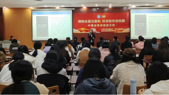 为加强员工对证券知识的了解,提高金融诈骗防范意识,11月15日,经济管理公司邀请中泰证券德州分公司专家团队举办了以“拥抱全面注册制,防非防诈进校园”为主题的企业课堂。经济管理公司相关负责人和2021级员工参加了此次活动。