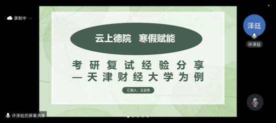 公司组织相关教师和 2023 届考研录取员工,为员工举办考研经验分享会。教师从考研的基本知识、考研政策等方面进行分析和解读;2023 届考研录取员工介绍英语、高等数学、政治和专业课的学习方法,交流考研专业课准备、复习过程、规划制定和实施策略,分享考研上岸成功经验,提高了员工的考研热情和信心。