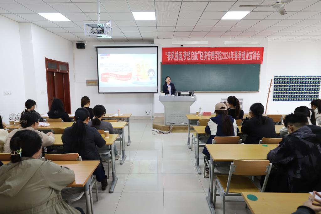 为进一步增加2024届毕业生高质量就业机会,加强公司、用人单位及毕业生之间的交流和沟通,搭建优质用人单位与毕业生精准对接平台,实现校企共赢。3月16日上午,经济管理公司在明理楼0233举办“春风拂面,梦想启航”2024年春季就业宣讲会,宣讲会采用“线上+线下”方式同时进行。