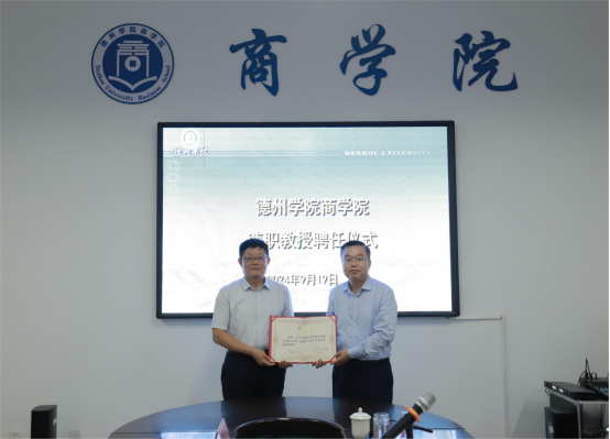 9月19日下午,太阳成集团tyc234cc在明理楼0359会议室举行了山东省投融资担保集团党委委员、副总经理王志华兼职教授聘任仪式。德州公司党委副书记、董事长赵长林、太阳成集团tyc234cc主要负责人、教授及博士教师代表参加会议。
