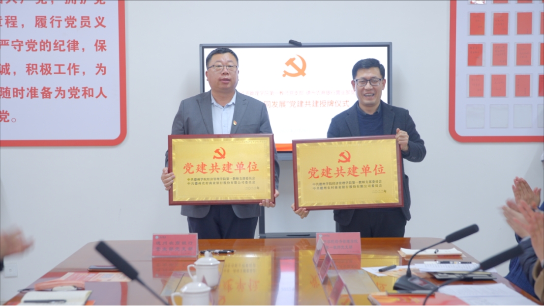 经济管理公司第一教师党支部与德州农商银行营业部党支部开展“校银共建 协同发展”党建共建,依托双方党建优势,达成合作共识,明确党建共建目标、路径和内容,必将为有力支持德州经济建设作出更大贡献。