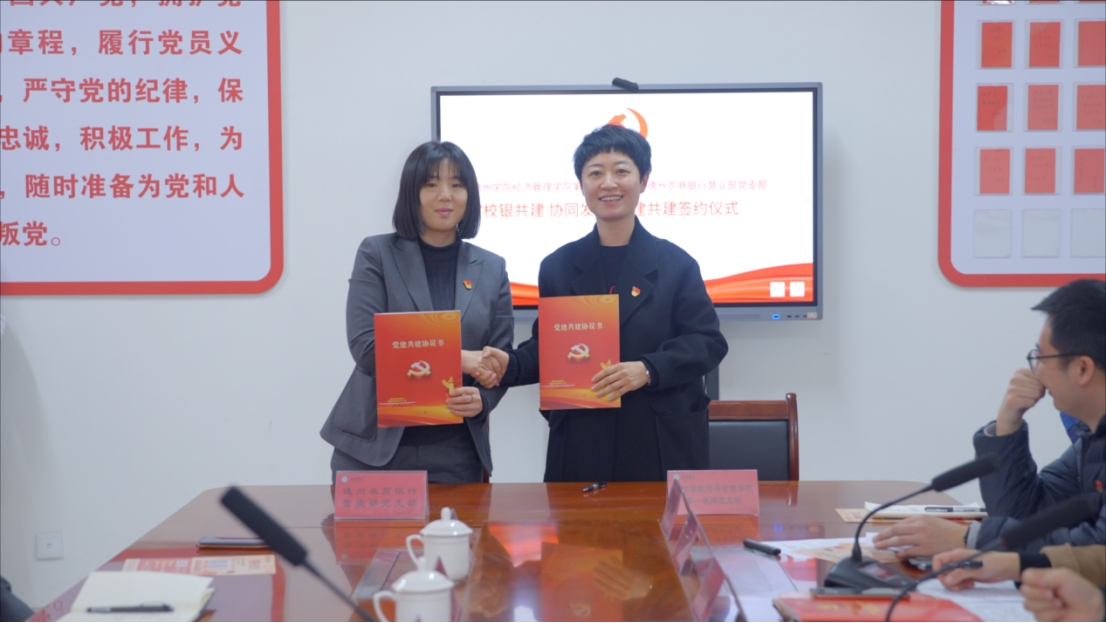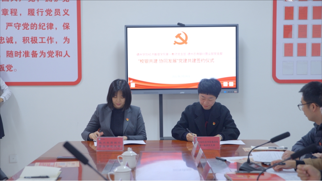 经济管理公司第一教师党支部书记与德州农商银行营业部党支部书记签订党建共建协议书。