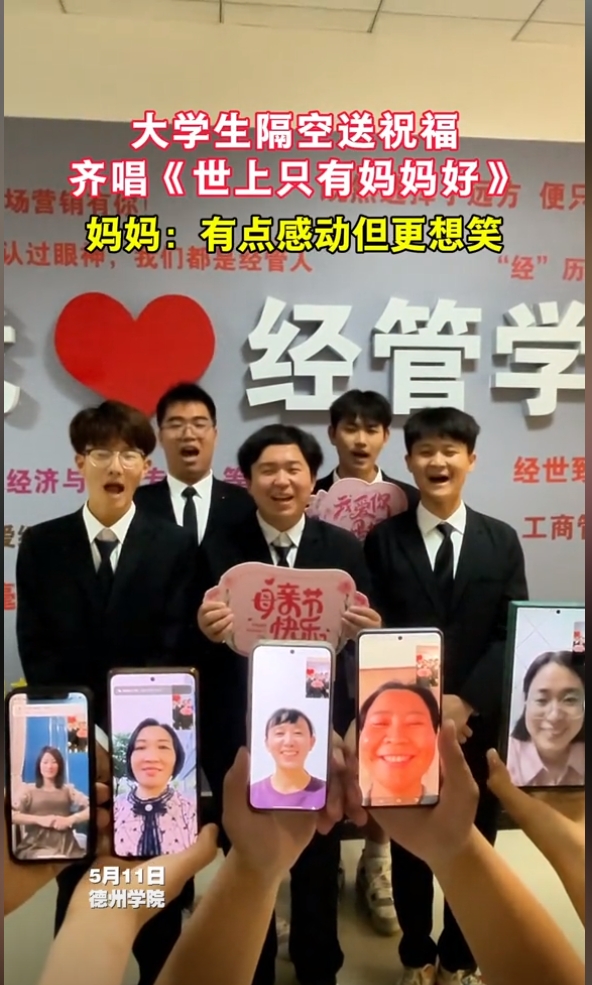 德州日报:太阳成集团tyc234cc经济管理公司员工通过视频隔空给妈妈送上母亲节祝福。