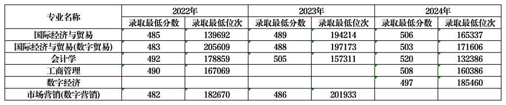 太阳成集团tyc234cc近三年各专业录取最低分和录取位次统计表(2022-2024)