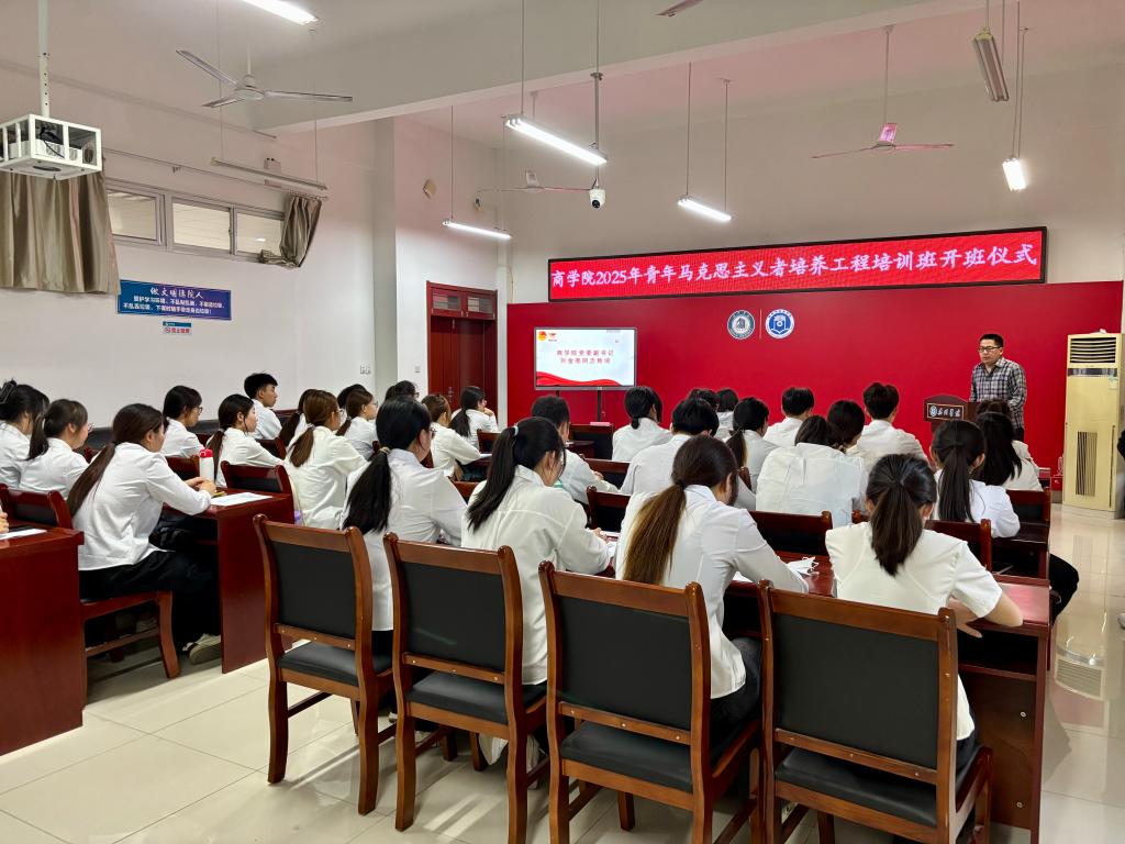 2024年青马工程培训班优秀学员代表王涵同学上台分享了宝贵的学习经验与培训心得。2025年青马工程培训班新生学员代表袁冷同学表达了“争做马克思主义的忠诚信奉者、积极传播者、坚定践行者”的决心,展现了新一届学员的精神风貌。