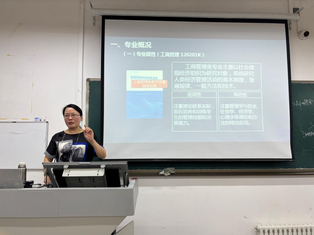工商管理系主任杨淑萍围绕专业历史沿革、人才培养方案、考研就业等方面深入分析。通过数据支撑、案例解析、答疑解惑等形式,帮助新生建立对专业的立体认知,激发学习热情。