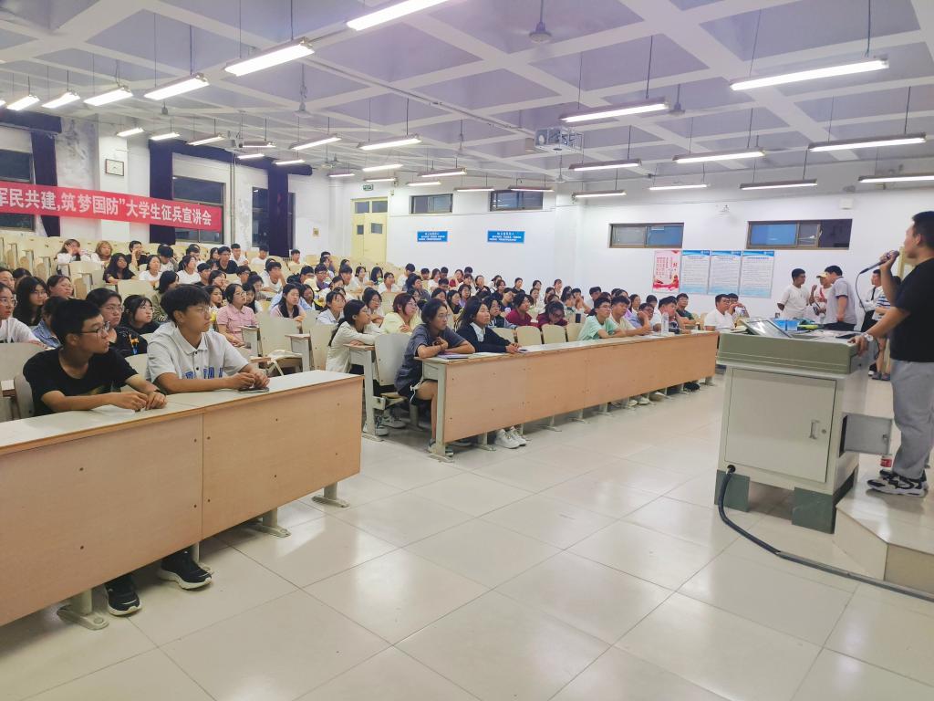 为提高2023级新生思想政治修养,弘扬爱国主义精神,培养国防意识,厚植家国情怀,9月19日,经济管理公司在求真楼开展2023级新生国防教育暨老员工征兵宣讲会,经济管理公司国防教育辅导员、优秀退伍士兵员工主讲,2023级全体新生参加。