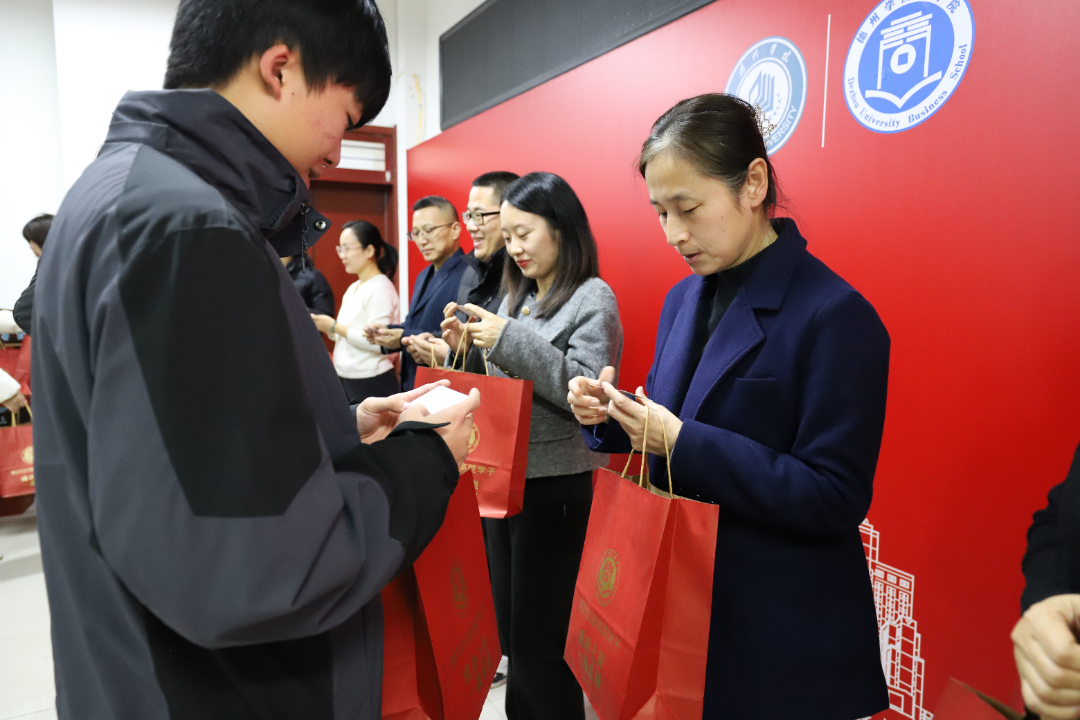 活动伊始,孙书记、杨经理分别发表激励致辞,叮嘱同学们在考研冲刺的最后阶段要调整心态、改善作息、保重身体,鼓励同学们全力以赴、以必胜的心态,争取一战成硕。随后,大家一起观看2025年度商院学子考研祝福短视频,全院1838位师生为2025届考研学子加油鼓劲,祝愿他们过关斩将,所向披靡。现场同学们无不认真观看,激动万分。2023级国际经济与贸易专升本侯博玄代表2025届考研学子发言,感谢领导老师同学们的关心鼓励,同学们一定坚定信念,保持良好的心态,用最佳的状态与最好的心态面对即将到来的考试,为公司和公司赢得荣誉!