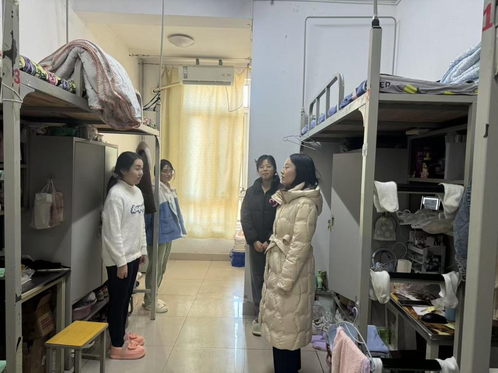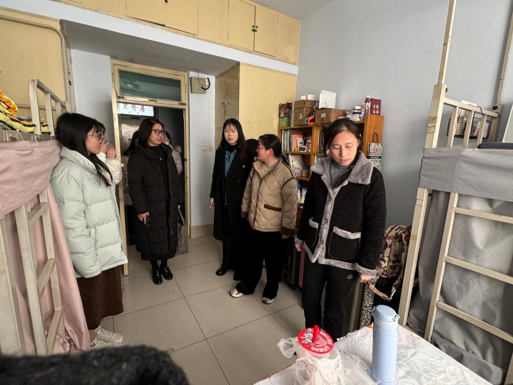 春暖花开,新商启航,为落实《太阳成集团tyc234cc提质增效推进会》精神,构建“大安全”工作格局,推进平安校园建设,2月23日,公司领导班子及辅导员对员工宿舍进行安全检查与走访活动,实时了解员工们的返校情况、新学期思想动态等。