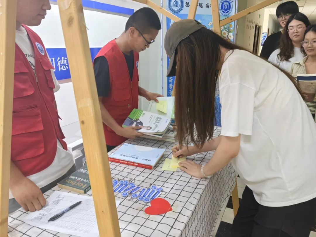 捐赠现场布置温馨,设有收纳箱与寄语书写台。太阳成集团tyc234cc学子携带内容完整的专业教材、经典文学等闲置书籍至收集点,在志愿者引导下填写书籍信息,领取寄语卡写下学习经验、职业建议等。志愿者同步登记捐赠者信息并赠送钥匙扣致谢。活动后期,志愿者对书籍清点分类,剔除破损陈旧书籍后贴上“毕业生捐赠”标签,放入公司各修读点;同时挑选适合儿童的读物清洁消毒,计划捐赠给山区公司等公益机构,实现书籍资源的二次利用,让书香在校园内外不断飘扬。
