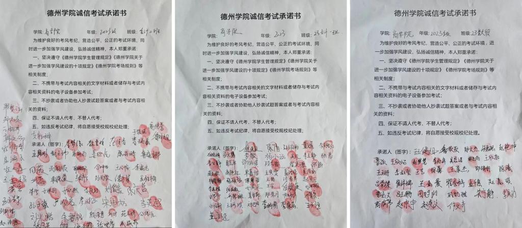 公司组织员工举行了《诚信考试承诺书》签署仪式。该承诺书明确了考试纪律要求与员工应履行的诚信责任,是员工恪守道德底线的庄严承诺。公司特别设置了"诚信考场我先行"签名墙,2023级国际经济与贸易专业全体员工执笔签名,郑重在签名墙上签署姓名。该签名墙时刻提醒着每位商院学子肩负的诚信责任,将诚信意识内化于心。