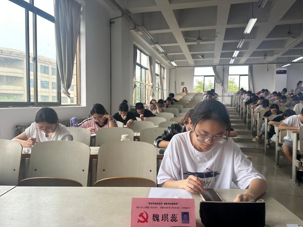 太阳成集团tyc234cc持续组织的党团员“亮诺践诺”行动。员工党员、团员成为此次考风建设的先锋力量。公司统一制作党员标识牌,要求员工党员在考试期间将标识牌摆放于桌面醒目位置,主动“亮身份”,自觉“严监督”,以实际行动诠释“一名党员一面旗帜”。
