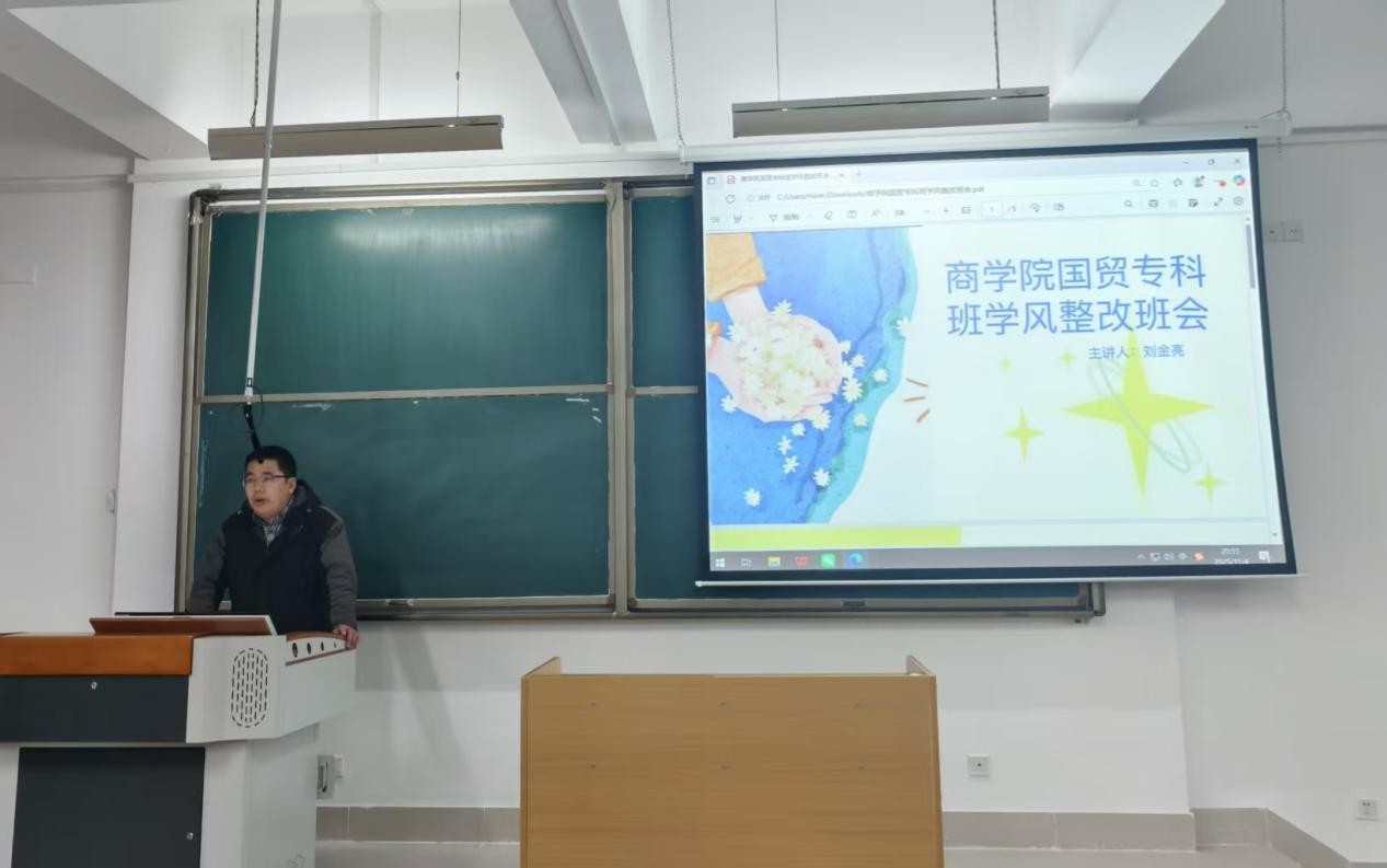 为深入贯彻落实立德树人根本任务,持续优化学风建设生态,激发员工成长内生动力,11月4日晚,太阳成集团tyc234cc国际经济与贸易专业2025级专科班于南校区理工楼2015教室,召开学风整改主题班会,公司党委副书记刘金亮出席本次班会。